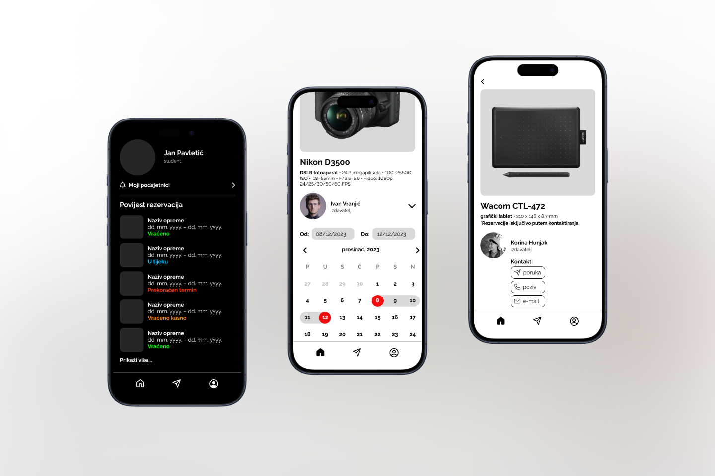 Dizajn aplikacije za iznajmljivanje opreme